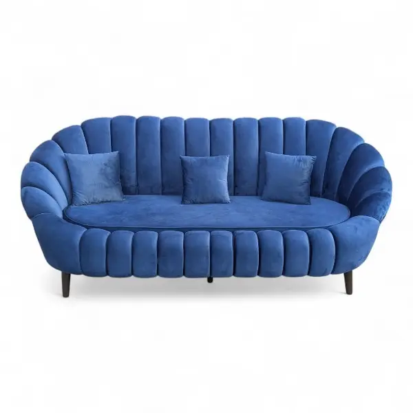 An elegant floral-inspired 5-seater sofa upholstered in lush velvet, supported by a sturdy Partel wood frame and cushioned with Molty foam for luxurious comfort.
